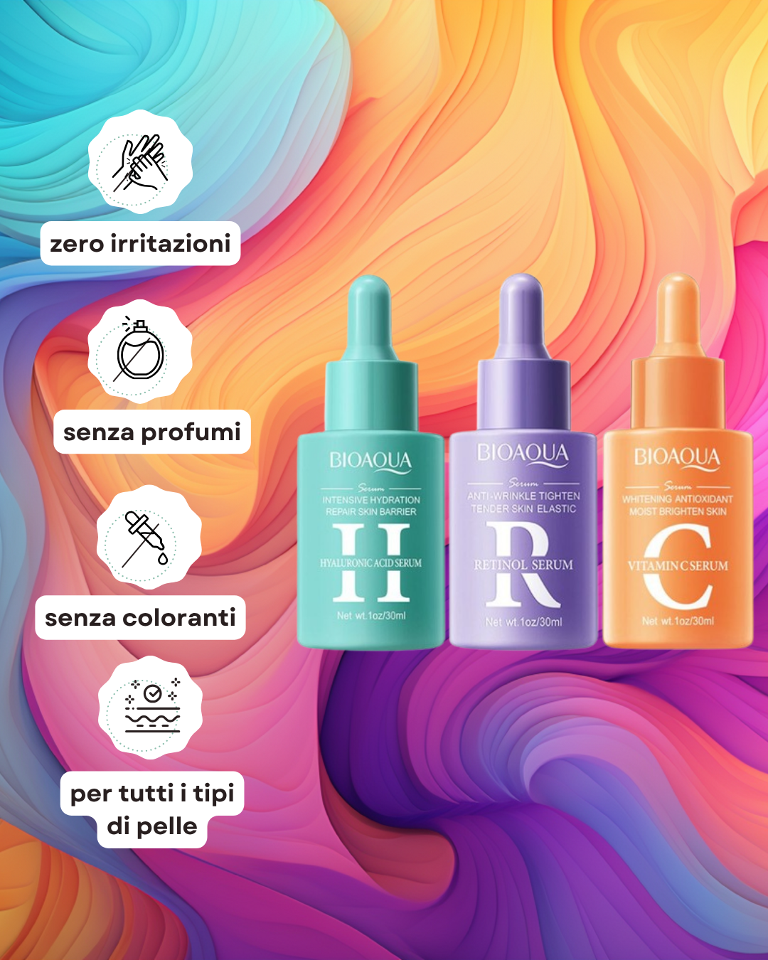 Scopri la rivoluzione skincare con il BIOAQUA Serum Combination Set, un kit esclusivo che riunisce tre potenti sieri viso